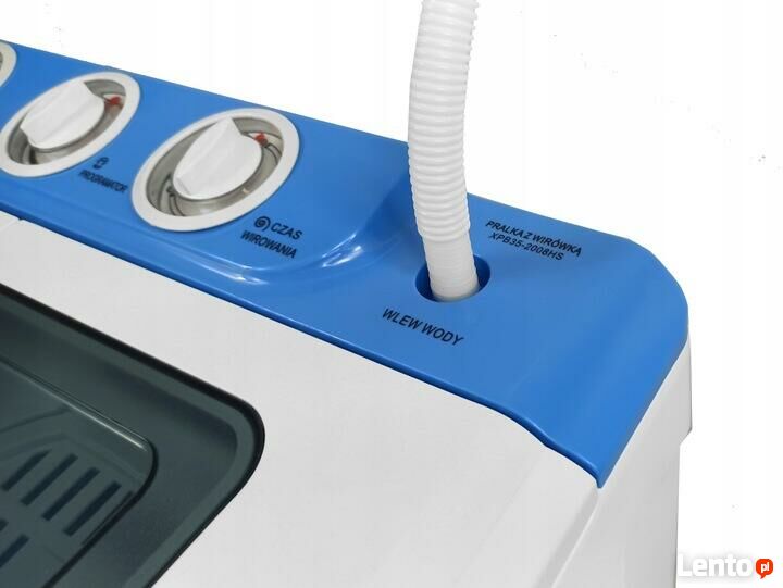 W zestawie do pralki znajduje się wąż doprowadzający wodę. Urządzenie można napełnić woda poprzez wąż lub wlać bezpośrednio do komory pralki lub wirówki. Urządzenie posiada dwa podłącza do wody. Oba umiejscowione są na programatorze w widocznym miejscu.